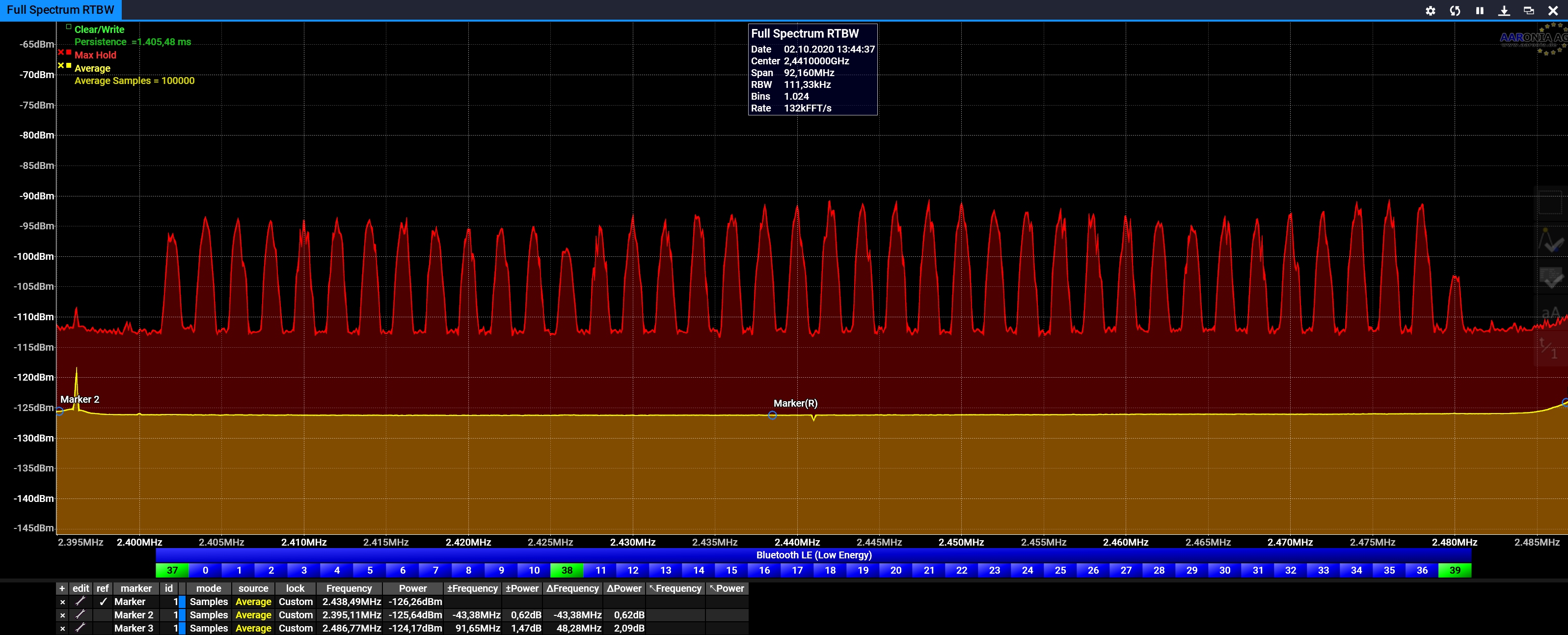 随附的屏幕截图显示了2,4GHz Wifi频段内的差异,包括。 一些标记读数。