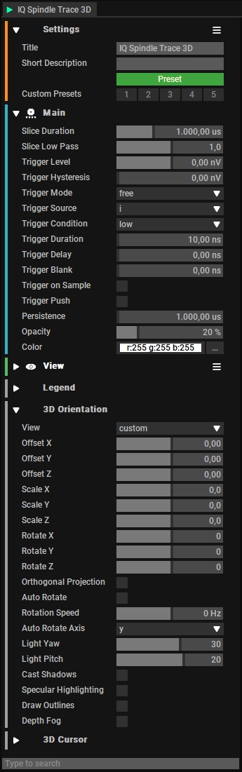 IQIQ Spindel Trace 3D功能模块提供了一个强大的触发功能设置,可以捕获我们想要的数据。此外,AARONIA的3D功能模块可以完全实现对3D视图的实时平移、滚动和缩放控制:
